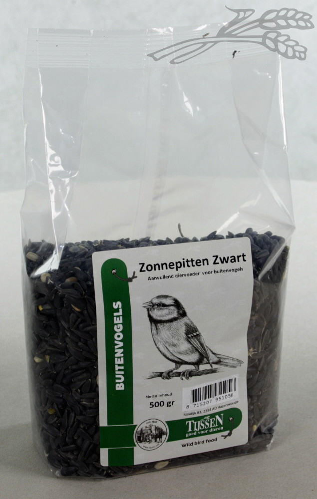Zonnepitten Zwart zijn rijk aan vetten. Lekker voor buitenvogels, of als lekkernij voor parkietachtigen.