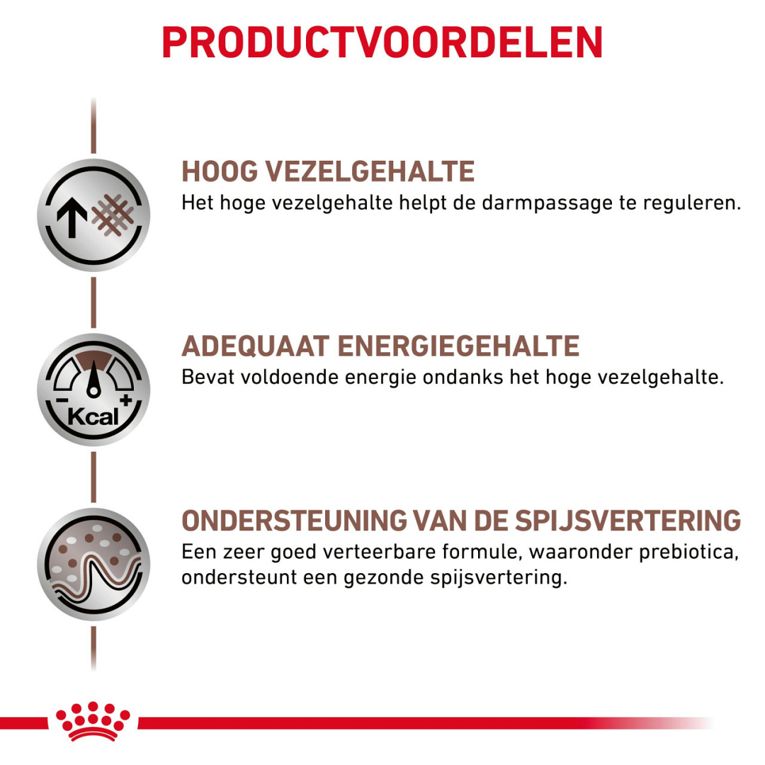 Royal Canin Gastrointestinal High Fibre is een speciaal samengestelde voeding die helpt om de spijsvertering van jouw hond gezond te houden.