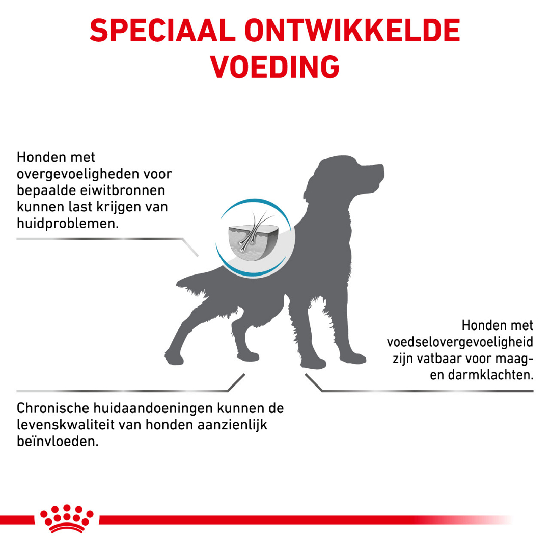 Help jouw hond zijn voedselallergie te beheersen door minder inname van allergie veroorzakende eiwitten met Royal Canin hondenvoer Hypoallergenic. Royal Canin Hypoallergenic is een speciaal samengestelde voeding voor honden ter vermindering van intoleranties voor bepaalde ingrediënten en/of voedingsstoffen.