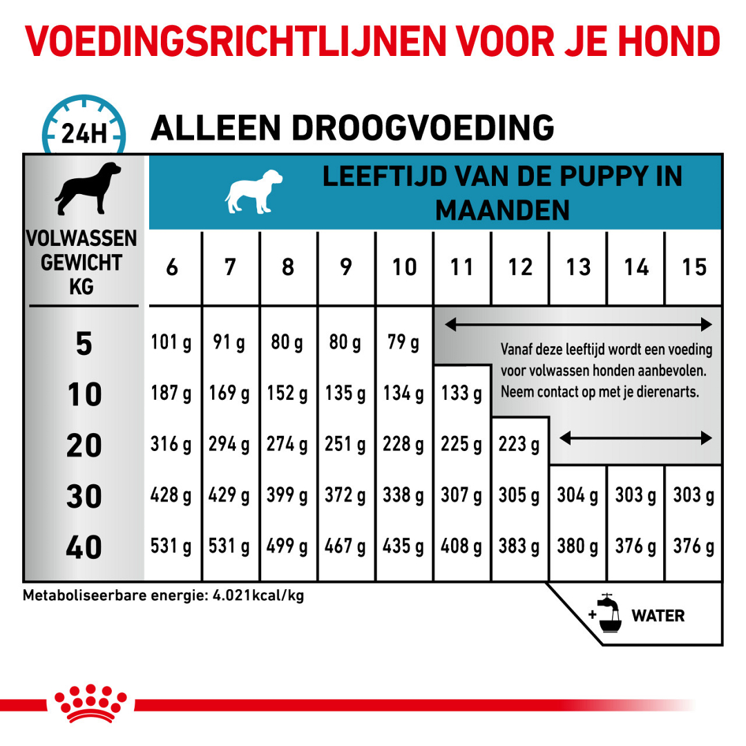Omdat dit een Royal Canin dieetvoeding is, is het belangrijk dat je deze voeding alleen aan je hond geeft als dit is geadviseerd door je dierenarts. Mocht je overschakelen naar deze voeding, doe dit dan geleidelijk in een tijdsbestek van 7 dagen. Zorg dat je elke dag zorgvuldig de juiste hoeveelheid voeding afweegt.