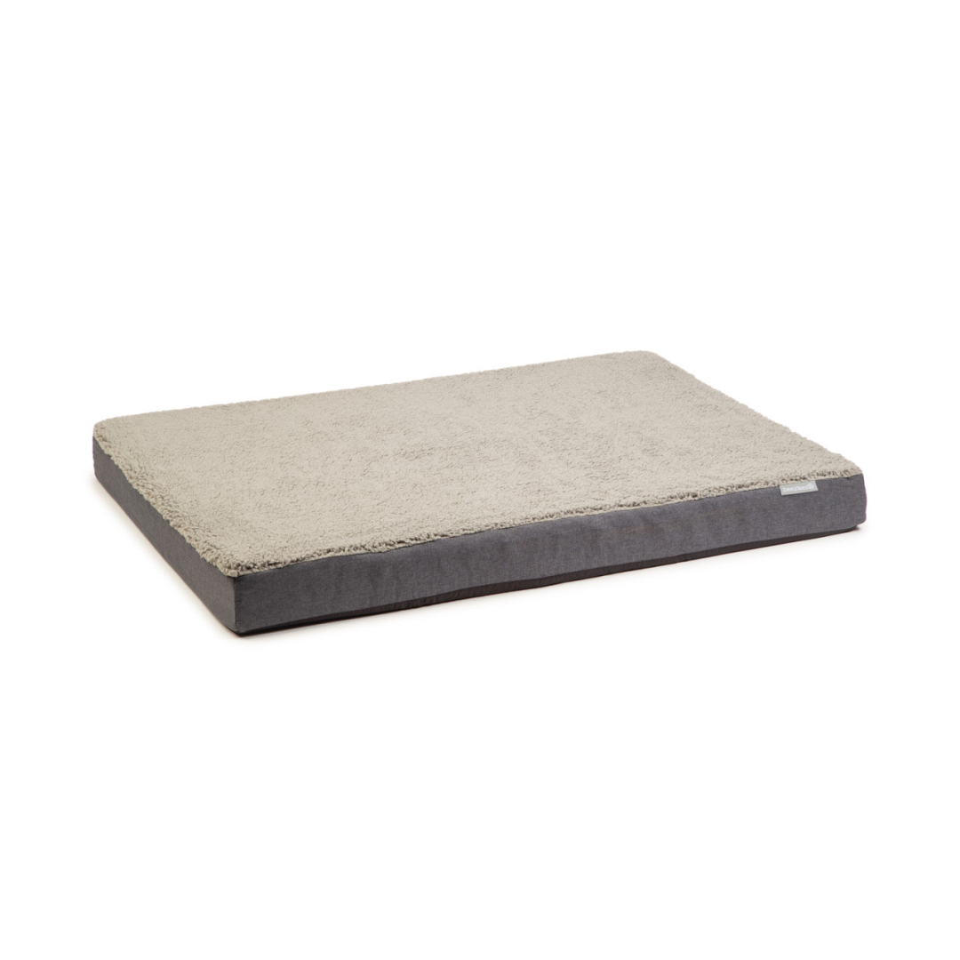 Drukverlagend hondenkussen met optimaal ligcomfort door een toplaag van memory foam. Met hoes van heerlijk zachte sherpa fleece en antislip onderkant.
