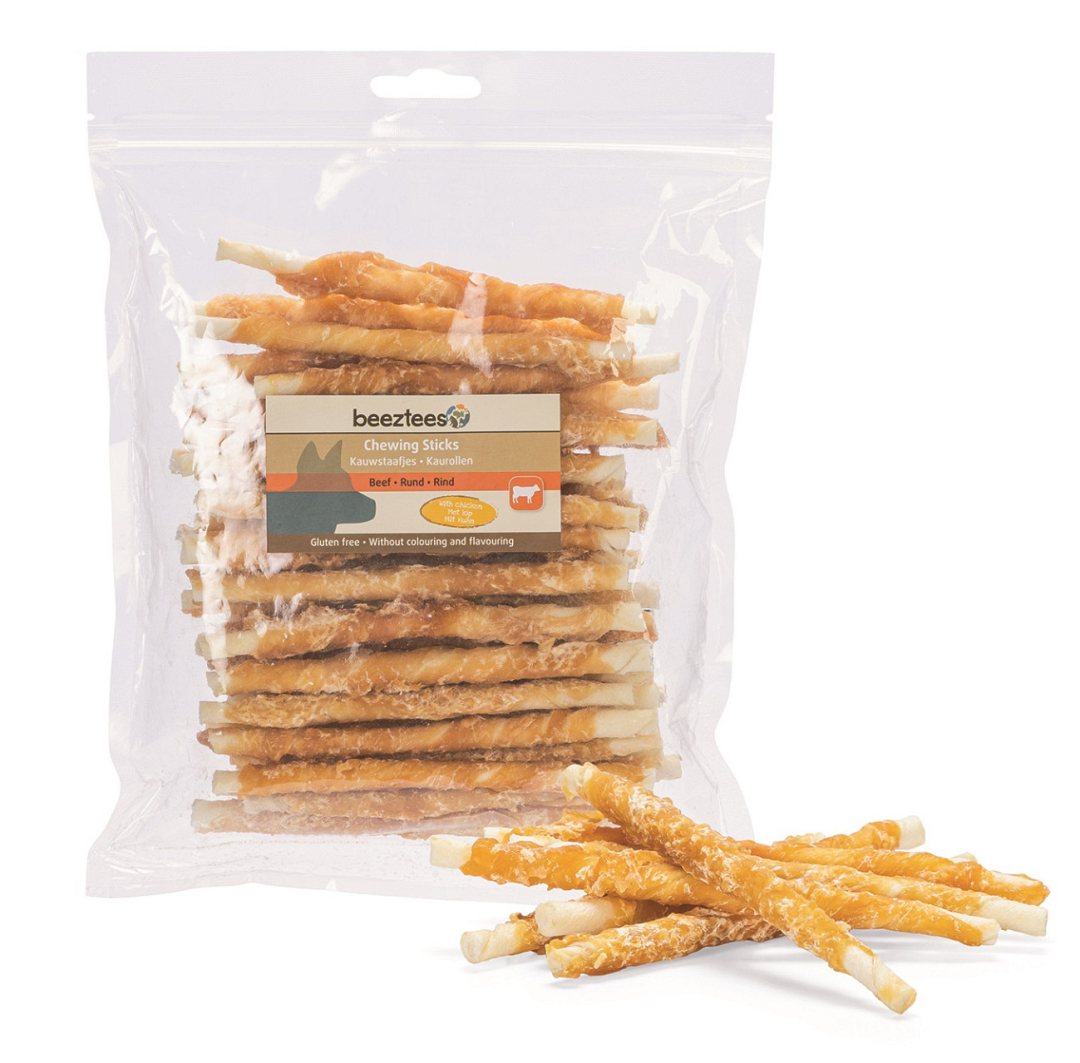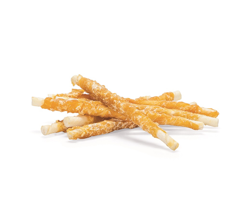 De Beeztees Kauwstaafjes Kip zijn overheerlijke hondensnacks. Deze natuurlijke snack gemaakt van runderhuid is omwikkeld met laagjes kip, wat de snack onweerstaanbaar lekker maakt voor jouw hond. Deze snack geeft jouw hond veel kauwplezier en kan worden gegeven als beloning of als tussendoortje. De snacks zijn glutenvrij en bevatten geen toegevoegde kleur- en smaakstoffen.