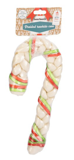 Met de Beeztees Kerst Rawhide Cane kun je jouw hond extra verwennen tijdens de kerstperiode! Dit heerlijke Beeztees kerstbotje is gemaakt van runderhuid en zorgt voor uren kauwplezier. Het kauwbot heeft de vorm van een zuurstok. Je kan deze dus ook tijdelijk ter decoratie in de boom hangen, totdat het tijd is om jouw hond te verwennen.