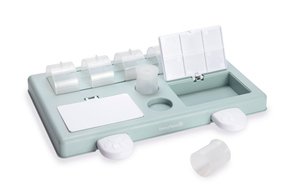 Het Beeztees Puppy Trainingsspel Riff is leuk hondenspeelgoed waarmee zowel het lichamelijke als geestelijke vermogen van jouw pup spelenderwijs wordt getraind. In dit trainingsspel kunnen kleine snacks worden verstopt.