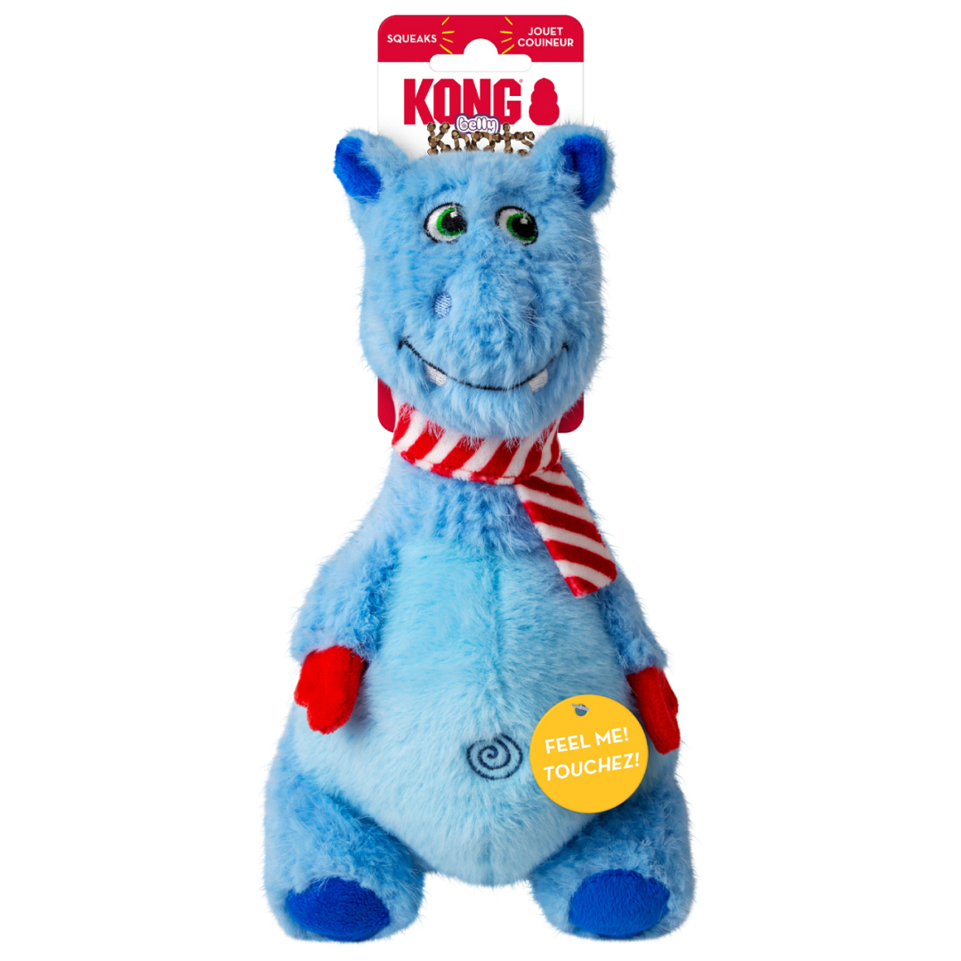 Treed in de feestelijke kerstwereld van Kong met dit Kong hondenspeeltje Knots Belly Hippo. Deze blauwe knuffelige Hippo brengt jouw hond direct in winterse sferen! Dankzij het interne touw met knopen fungeert dit speeltje ook als trekspeeltje. Het extra zachte materiaal zorgt voor een zeer knusse en warme uitstraling waardoor jouw hond direct gek zal zijn op dit speeltje. De interne pieper in het hoofd van deze Hippo zal de instincten van jouw hond extra prikkelen voor nog meer speelplezier!