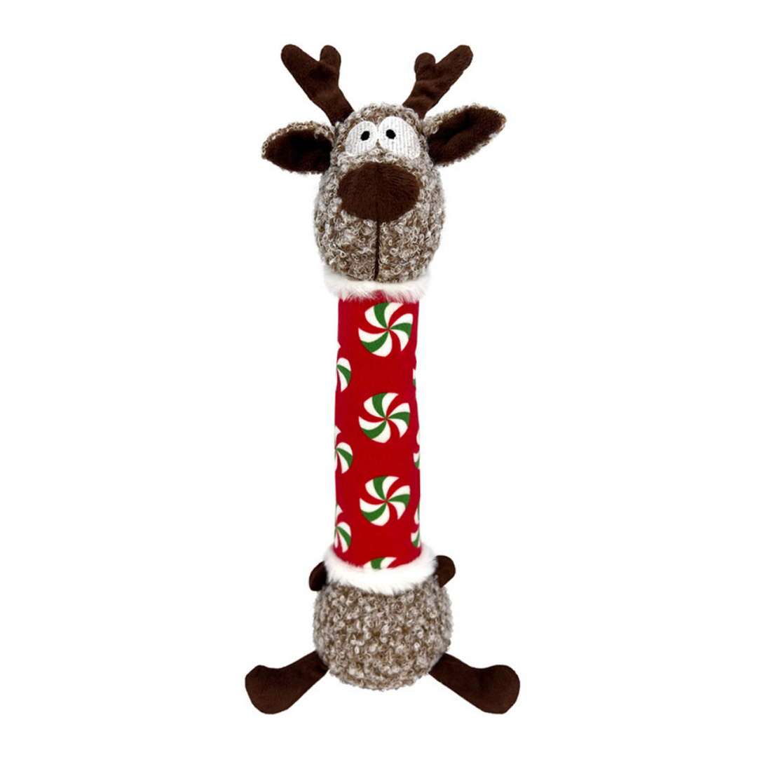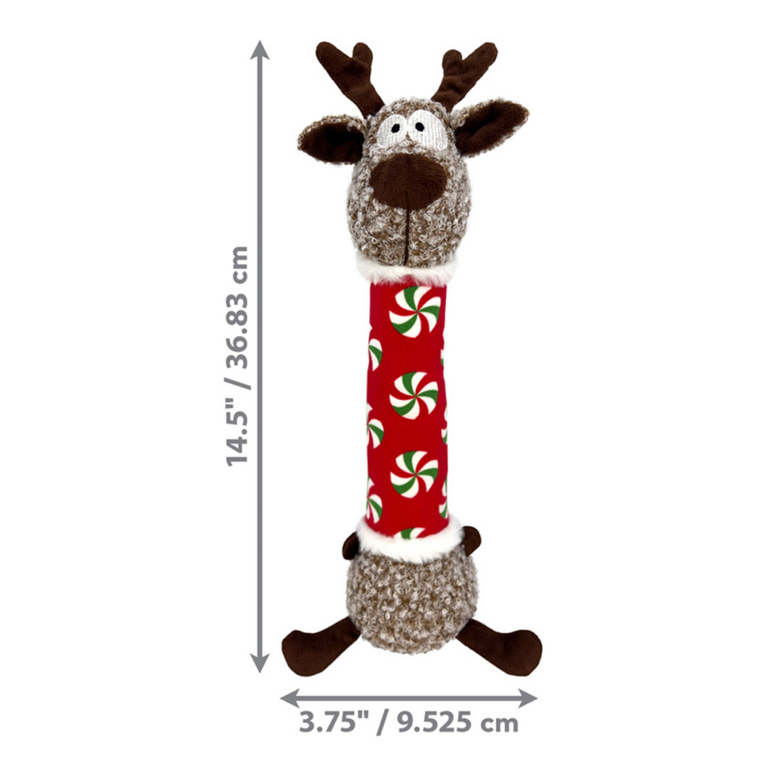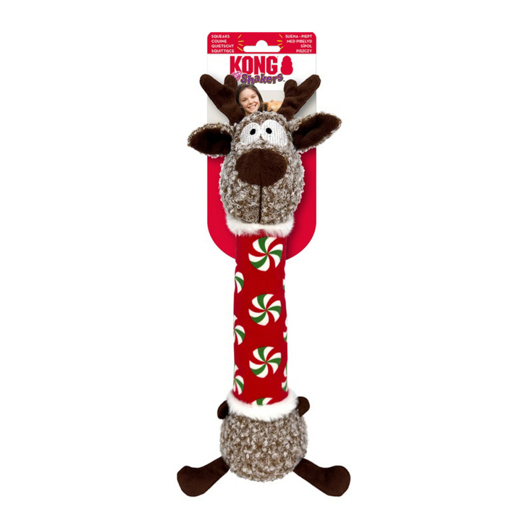 De Kong kerst Shakers Luvs reindeer is een rendier met een ontzettend lange nek wat het door elkaar schudden van dit speeltje extra leuk maakt. De geïntegreerde piep zorgt voor extra speelplezier. Het speeltje is gemaakt om te apporteren en trekspelletjes mee te spelen.