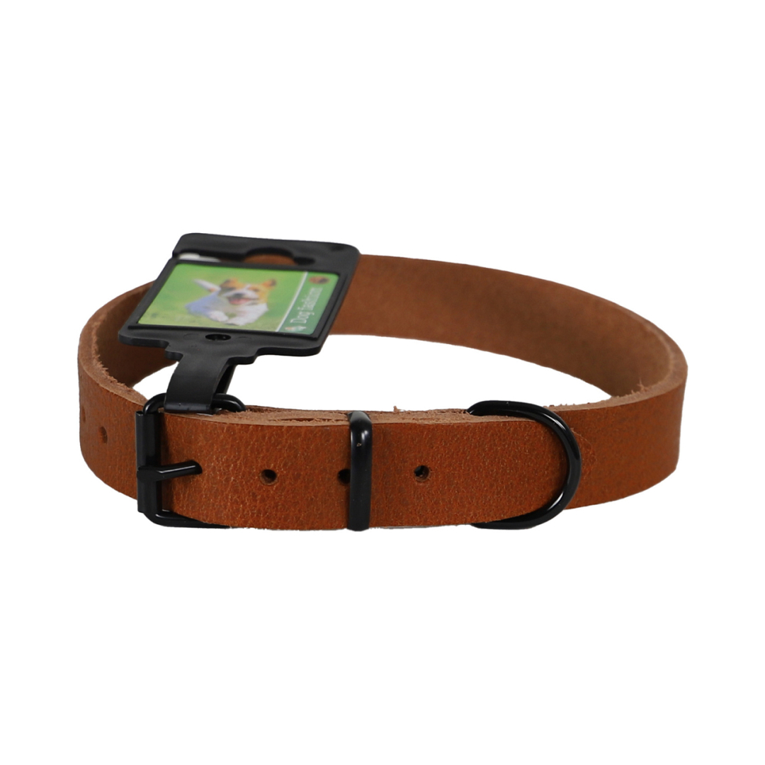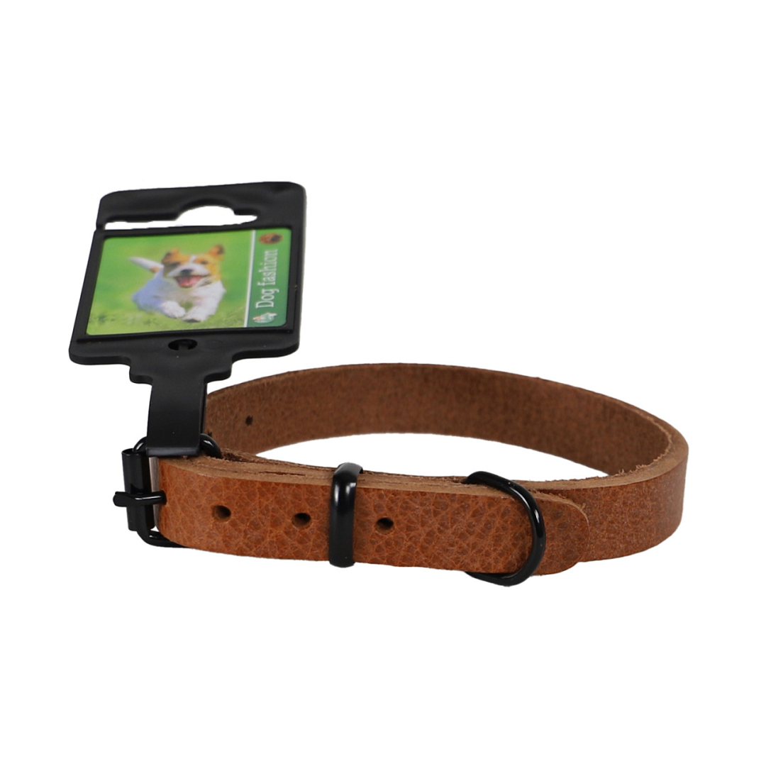 Luxe halsband van uitstekende kwaliteit leer met zwart metalen beslag.