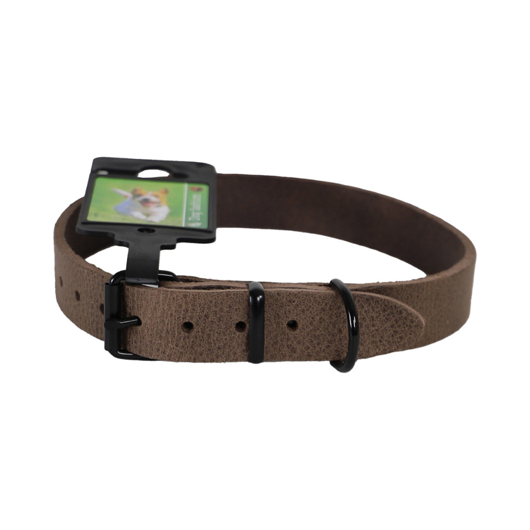 Luxe halsband van uitstekende kwaliteit leer met zwart metalen beslag.