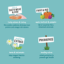 Als bonus wordt de de vis en het gevogelte verrijkt met orgaanvlees (zoals hart en lever) voor een extra voedzame boost. Daar doen we een supergezonde mix van fruit, groenten, kruiden en botanicals bij en we garen alles zachtjes: zo blijven alle smaken en voedingsstoffen optimaal bewaard.