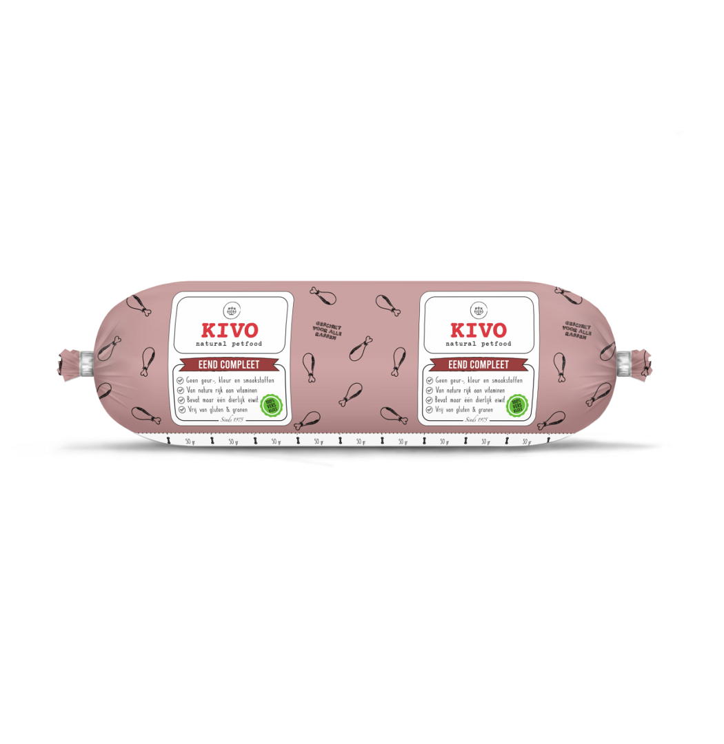 Kivo Hondenvoer Eend Compleet is een verse, diepgevroren maaltijd met 100% vers vlees en 0% fratsen. Bevat een compleet prooidier en natuurlijke vitaminen.