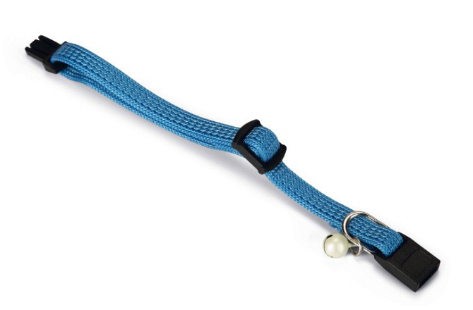 Nylon halsbandje met veiligheidssluiting en een belletje.