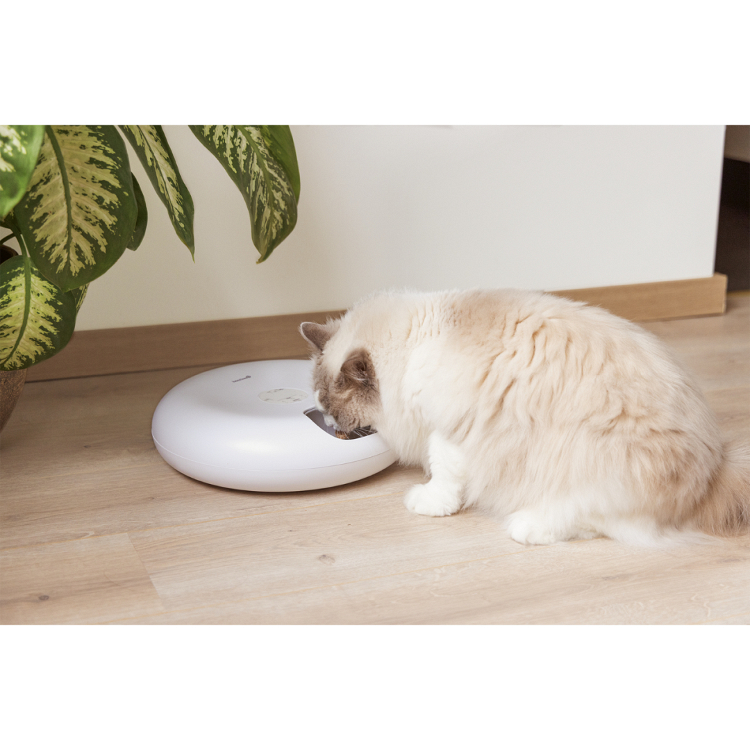 Automatische voerbak voor kat of kleine hond. Geschikt voor zowel droog- als natvoer en tot 6 maaltijden per dag.