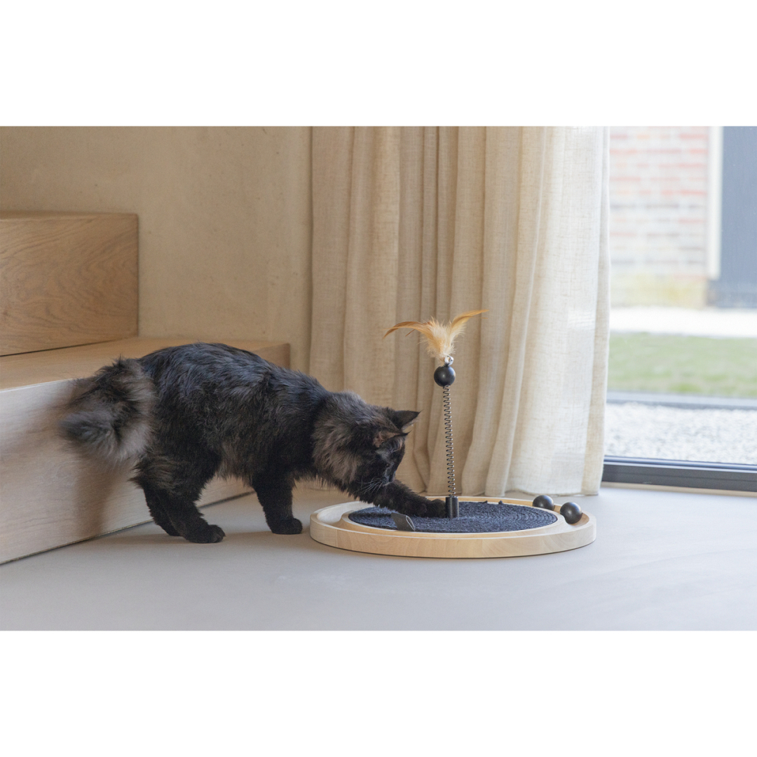 Stijlvol kattenspeeltje met diverse speelelementen en kattenkruid voor extra aantrekkingskracht. Afm. Ø 39,5 x 29 cm.