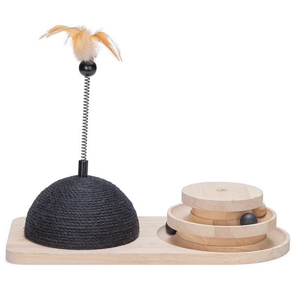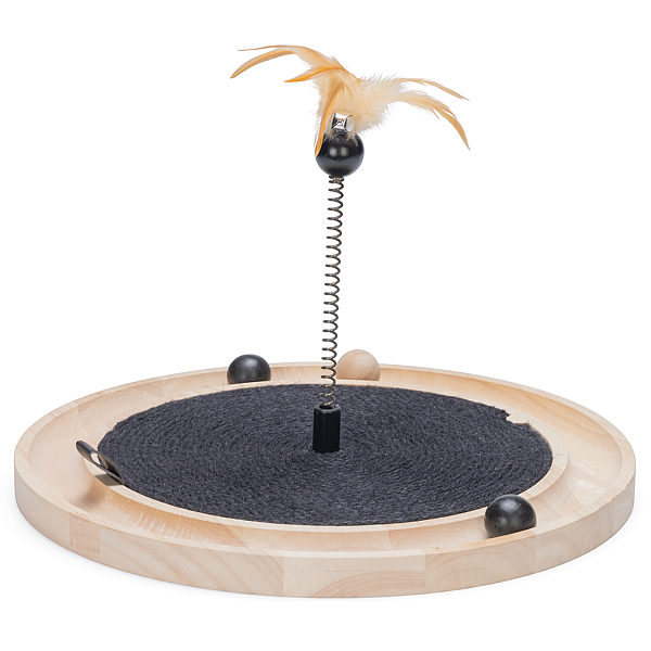 Stijlvol kattenspeeltje met diverse speelelementen en kattenkruid voor extra aantrekkingskracht. Afm. Ø 39,5 x 29 cm.