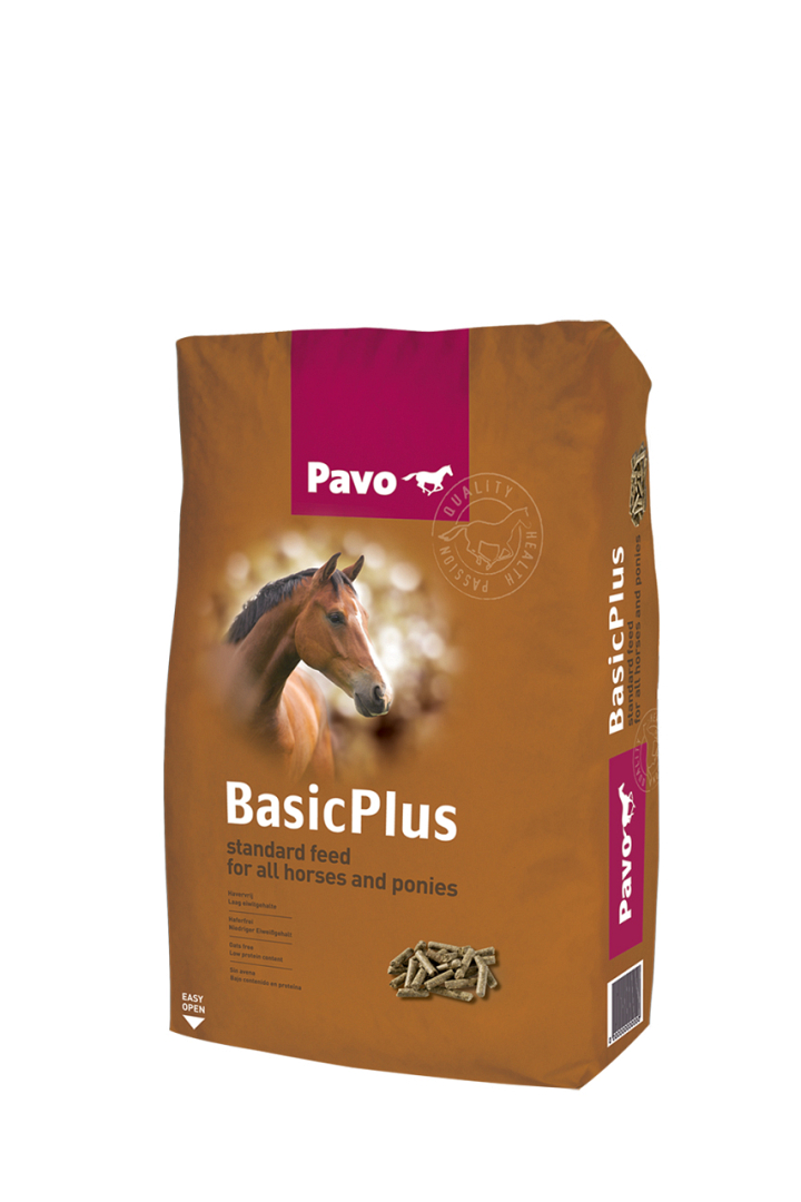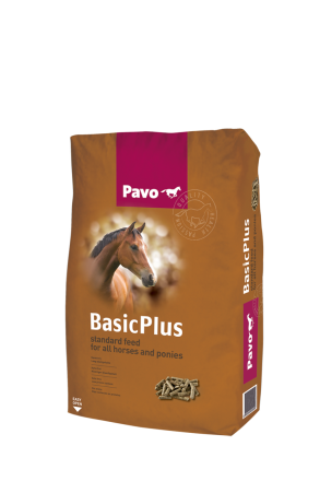 Pavo BasicPlus bevat alle essentiële vitaminen, mineralen en sporenelementen zoals vitamine A, E, Biotine en Zink. Het lage eiwitgehalte maakt het geschikt voor paarden en pony's die weinig arbeid verrichten en niet dragend/lacterend zijn. Door de uitgebalanceerde samenstelling word je paard of pony niet te zwaar en niet te fel en krijgt hij toch voldoende voedingsstoffen binnen.